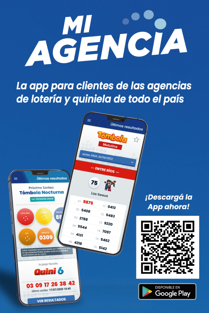 Mi Agencia es una nueva App que está pensada para los clientes de las Agencias Oficiales de Lotería y Quiniela de todo el País. Cuenta con contenido informativo, de entretenimiento y de soporte. Los usuarios podrán utilizarla para seguir en vivo las cabezas de las quinielas, averiguar resultados de sus juegos favoritos, conocer los pozos acumulados, consultar los números de la suerte, las efemérides, el horóscopo y el significado de los sueños, acceder a webs de diversos proveedores para comprar o contratar productos y servicios, entre otros.